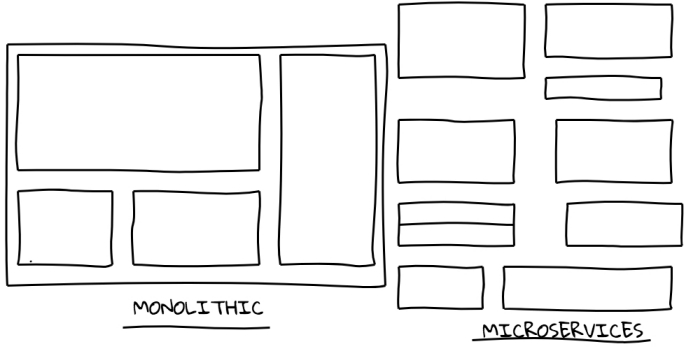 Picture made using ShakyDrawRecently we had an downtime at the place where I just started working. It took around an hour to get the servers up and running again. When they traced back they found out that fault occurred in one microservice and propagated to others. While discussing the cause of the problem, we were questioned if it would had been easier to trace and correct the fault if the architecture had been Monolithic.